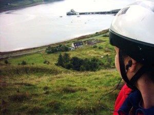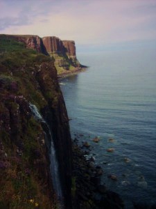 Ullapool, un righello bianco di case su una baia. Al tramonto. E fu proprio lì che per la prima volta preferisti (ora faccio basta con questo passato remoto abusato) un gradino e un po’ di vento, alla compagnia di altri viaggiatori muniti di chitarra e cappelli fuori luogo.Edward & Henry Islands. Erba verde che galleggiava sull’acqua. Il molo più malinconico del pianeta, Tarbert. Un po’ di nostalgia di casa mischiata a qualche lacrima di pioggia. Lacrima invisibile che la coppia americana in pensione ha provveduto a spostarti dal viso. Volevano portarti nel loro B&B, preoccupati per il fatto che girassi da sola per la Scozia. Ti hanno offerto un passaggio in taxi, ma poi, memore di tutti i film dell’horrore che hai malauguratamente voluto vedere da piccola e di nascosto, decidi di voler mantenere di loro un bel ricordo e li saluti.  Sei infatti arrivata ad Uig, sull’isola di Skye. Una bicicletta e un obiettivo da raggiungere. Così hai fatto un coast to coast dell’isola per andare a vedere la cascata di Kilt Rock, che sgorga direttamente sull’oceano da un alto trampolino di roccia.