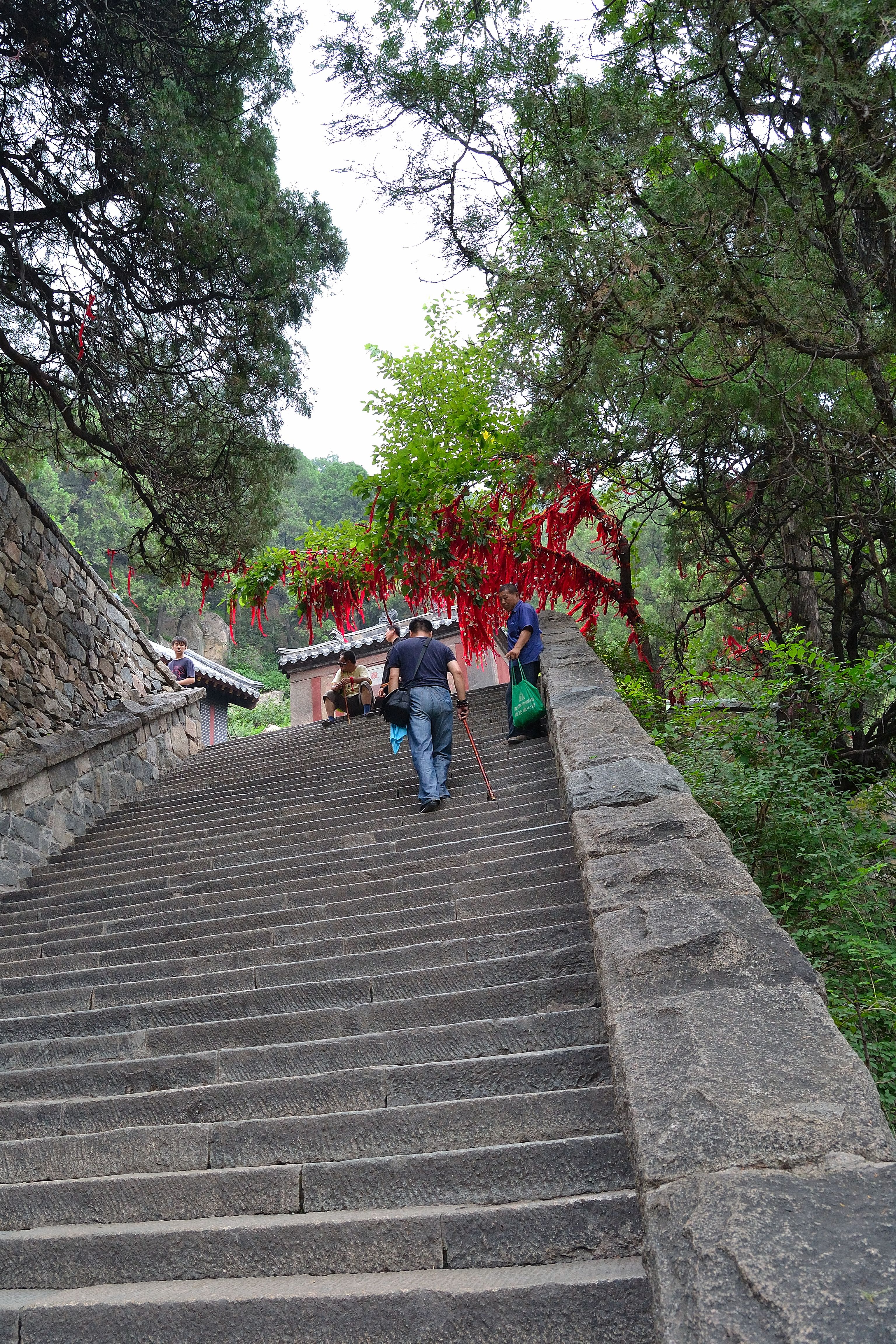 Si parte! Dopo 15 metri primo pit-stop in un negozietto: compro uno zainetto tecnico per mettervi dentro la mia borsa a tracolla, troppo scomoda per la scalata con la Nikon dentro, un bastone di legno con un drago sulla maniglia (per scalare meglio il monte, e poi faceva troppo figo!) e un pacchettino di incensi (da bruciare nel tempio dell’arrivo). Il tutto pagato il corrispettivo di 2,70 euro.