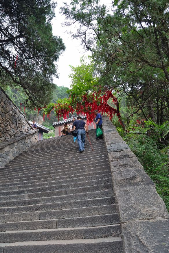 Arriviamo al sudore. Mamma mia quanto ho sudato!!! Ho iniziato il percorso nella maniera più ortodossa possibile: sono partita dalla visita ad un tempio taoista ai piedi della montagna, ho offerto dell’incenso alla montagna come buon auspicio per la scalata. I monaci del tempio poi hanno voluto fare un pò di foto e mi sembravano più dei bagnini di Riccione piuttosto che dei monaci buddisti. La gioventù non conosce credo!