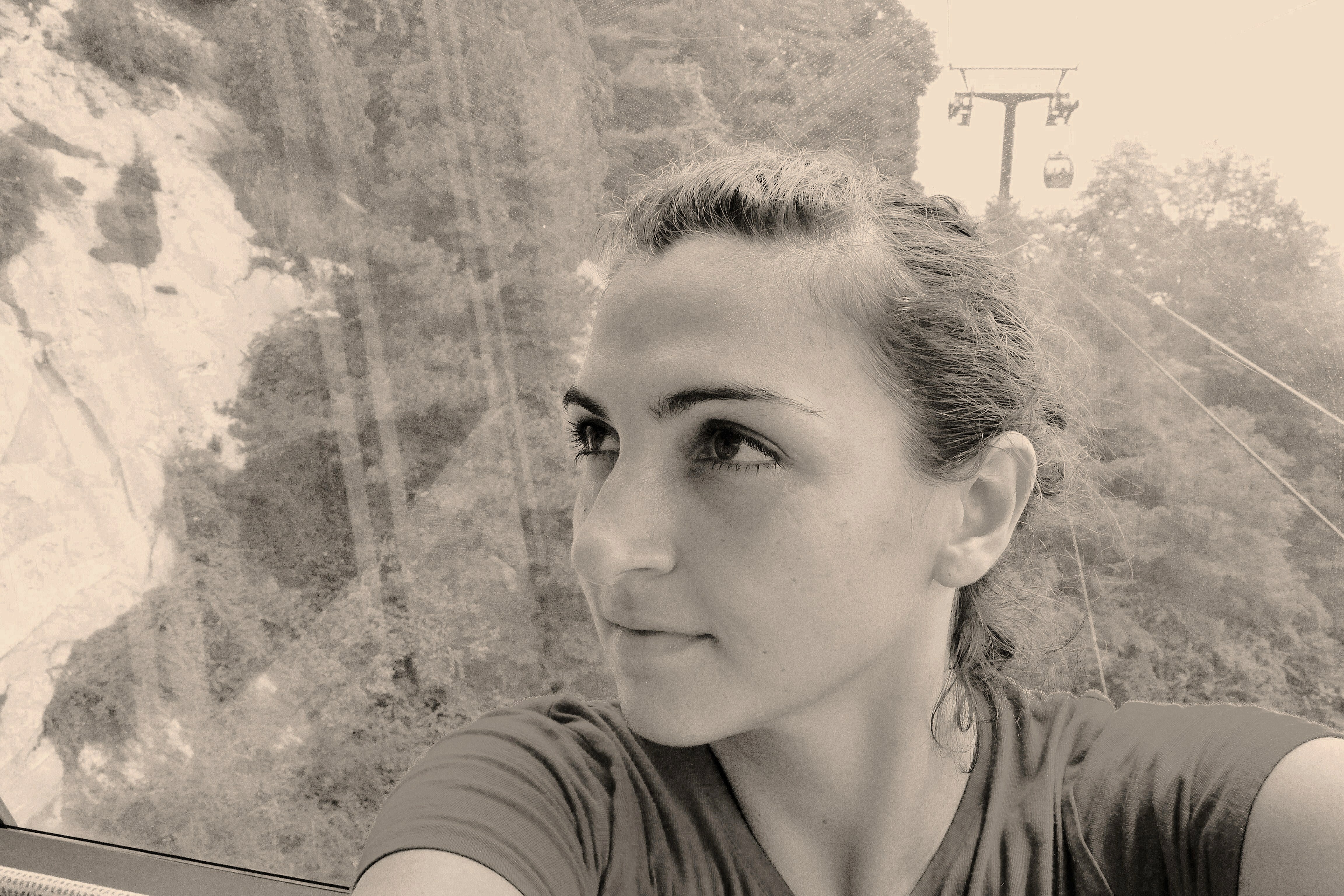 Prendo la funivia. Da sola nella cabina. A volte sussultava e io con lei.