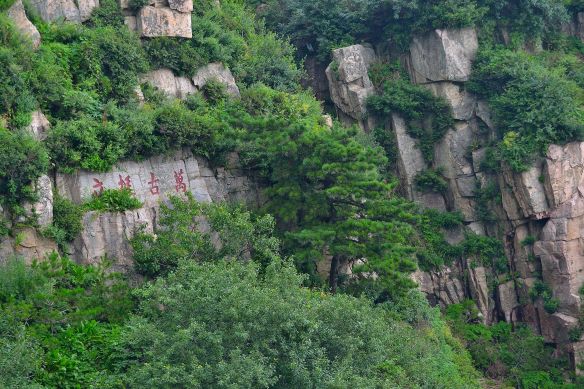 I monti taoisti infatti sono 5, ma il TaiShan è quello più a est di tutti, e poiché la tradizione cinese fa risalire l’origine della vita a Oriente (se la cantano e se la suonano, eh?!), questa montagna è un pò più sacra delle altre. A dire il vero, su questo monte sono stati edificati non solo templi taoisti, ma anche confuciani e buddhisti. Inoltre questa montagna rappresenta un tesoro non solo per motivi di culto, ma in quanto sia una testimonianza calligrafica a cielo aperto. Una montagna verdeggiante per gli occhi, l’incarnazione sacra della Dea delle Nuvole di Smeraldo per l’animo dei cinesi. Lungo il percorso (la scalata) si incontrano infatti centinaia di scritte sulla roccia il cui significato ovviamente io ho ignorato (peccato!!!).