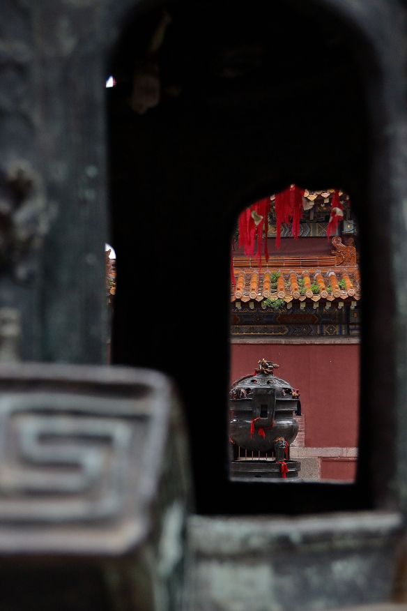 Arrivo in cima e vado a raggiungere l’ultimo tempio. Sono a 1570 metri d’altezza. Prima vado al tempio delle nuvole azzurre (!!), votato a Bixia, dea della fertilità. Mi fermo così a mangiare una focaccia preparata da una signora. Sembrava un cassone con le erbe di campo, ma con l’impasto un pò più simile alla pizza. Divina!