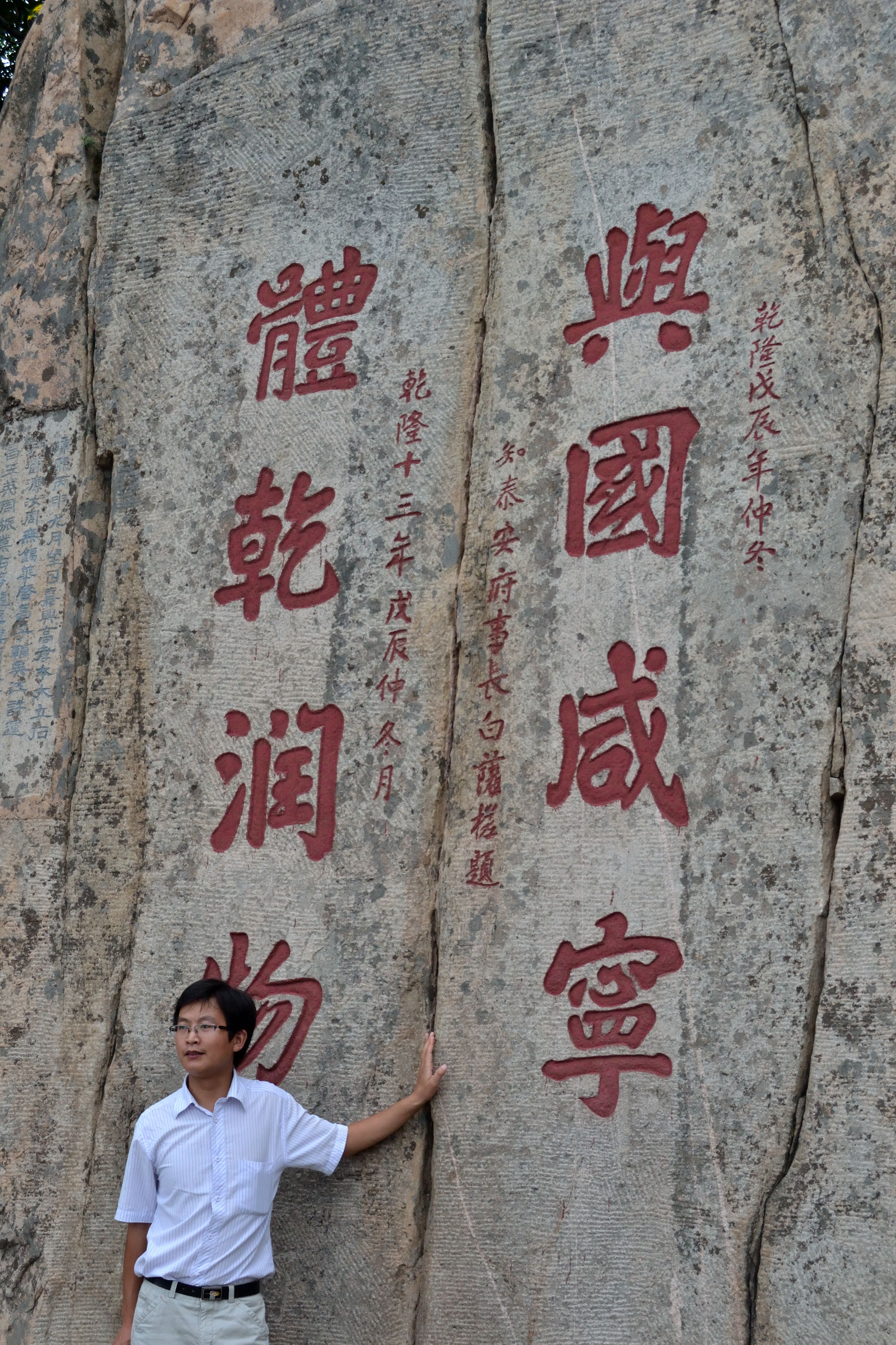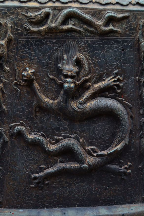 Arrivo davanti ad un insieme di pietre con delle scritte d’oro con un dragone inciso nella roccia, altre scritte rosse e altre blu. Sapere il cinese… e così, dopo non aver visto un turista che non fosse un cinese (per carità mi guardavano tutti stupiti come se fossi la madonna nera di Loreto arrivata su una nuvola trainata da degli angeli, tutti mi sorridevano e immagino si chiedessero su quale guida avessi trovato quel posto)… quindi dicevo dopo una mattinata passata a sentirmi una marziana, in cima alla montagna sento: <<un altro sasso a forma di figa!>>. Italiani!!!