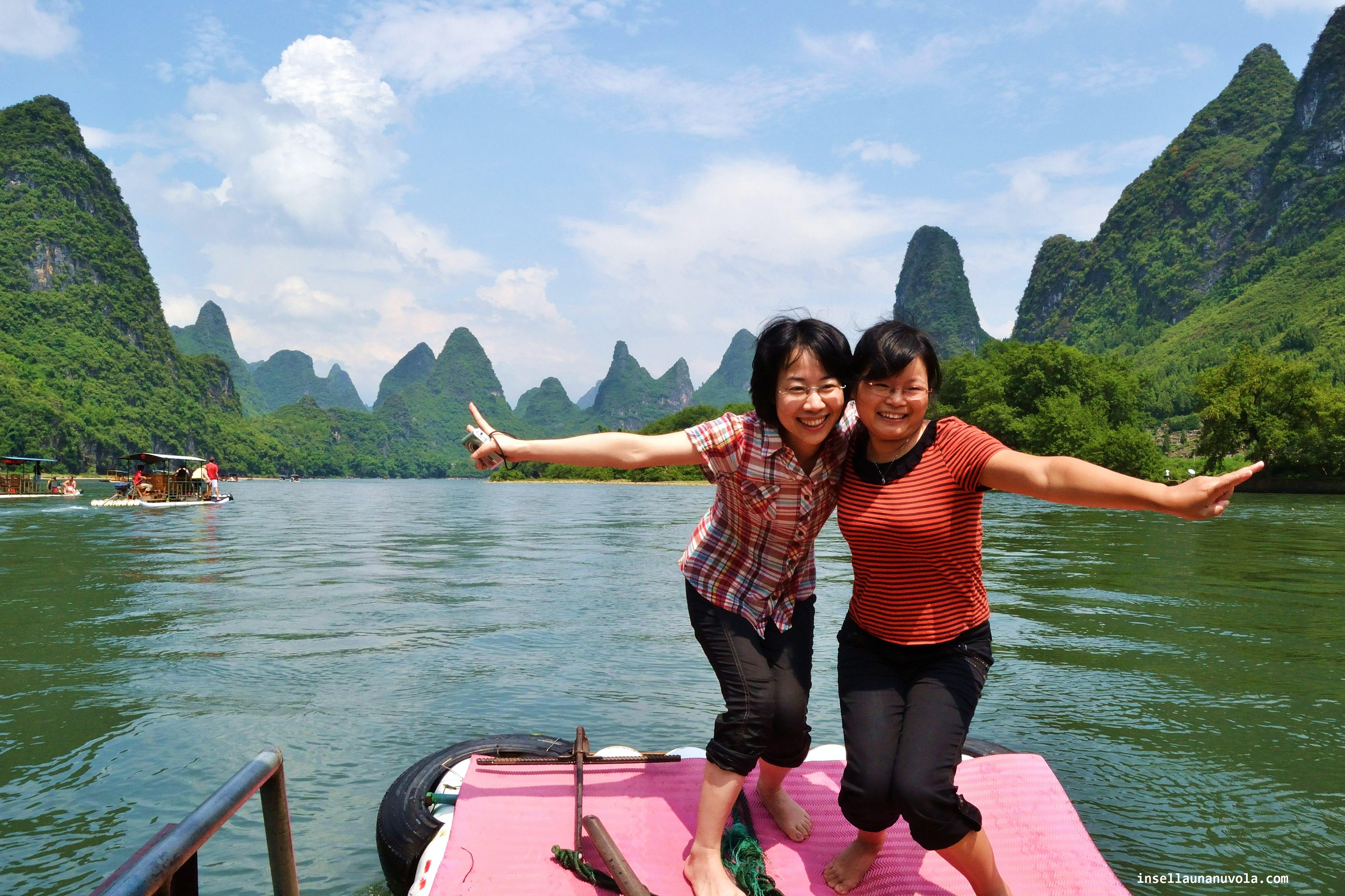 Gentilmente, ho cercato di farle capire che avrei fatto da sola. A quanto pare la cocciutaggine è nonna, che me l’ha tanto ricordata, e così mi ha fatto salire su una barca. Mentre io fissavo il prezzo (quello suggerito dalla Lonely Planet), lei insisteva per un altro, io abbassavo e lei alzava. Mentre sbuffavo per la situazione, sento il marinaio della barca sbraitare in cinese (ovviamente), ci fa scendere e ci fa salire su un’altra zattera. Questa volta più piccola. Lì per lì non ho capito cosa non gli andasse bene, se il prezzo o il fatto che io volessi solo attraversare il fiume da una sponda all’altra. Riesco comunque ad avere il mio prezzo.
