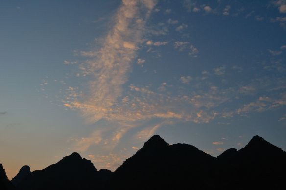 E’ stata una cosa piccola piccola, ma è stato un grande piacere. Come la chiusura di un cerchio. Come se i portoni mi avessero improvvisamente ringraziato per tutta l’attenzione dedicatagli in questi giorni. Oggi in realtà ho incontrato per caso di nuovo Fabian, fuori ad un negozio, un altro saluto stupito e ognuno per la sua strada. Davvero divertente! Per concludere gli incontri, per dirla tutta, mentre mi accingevo a scalare la scalinata di una collina (terminologia scelta appositamente per evidenziare il carattere accidentato degli scalini) per fotografare Yangshuo al tramonto, mi ha tagliato la strada un topo di 15-20 cm. Impaurito più di me, stava cercando rifugio nella sua tana. Mamma stai avendo la pelle d’oca vero?