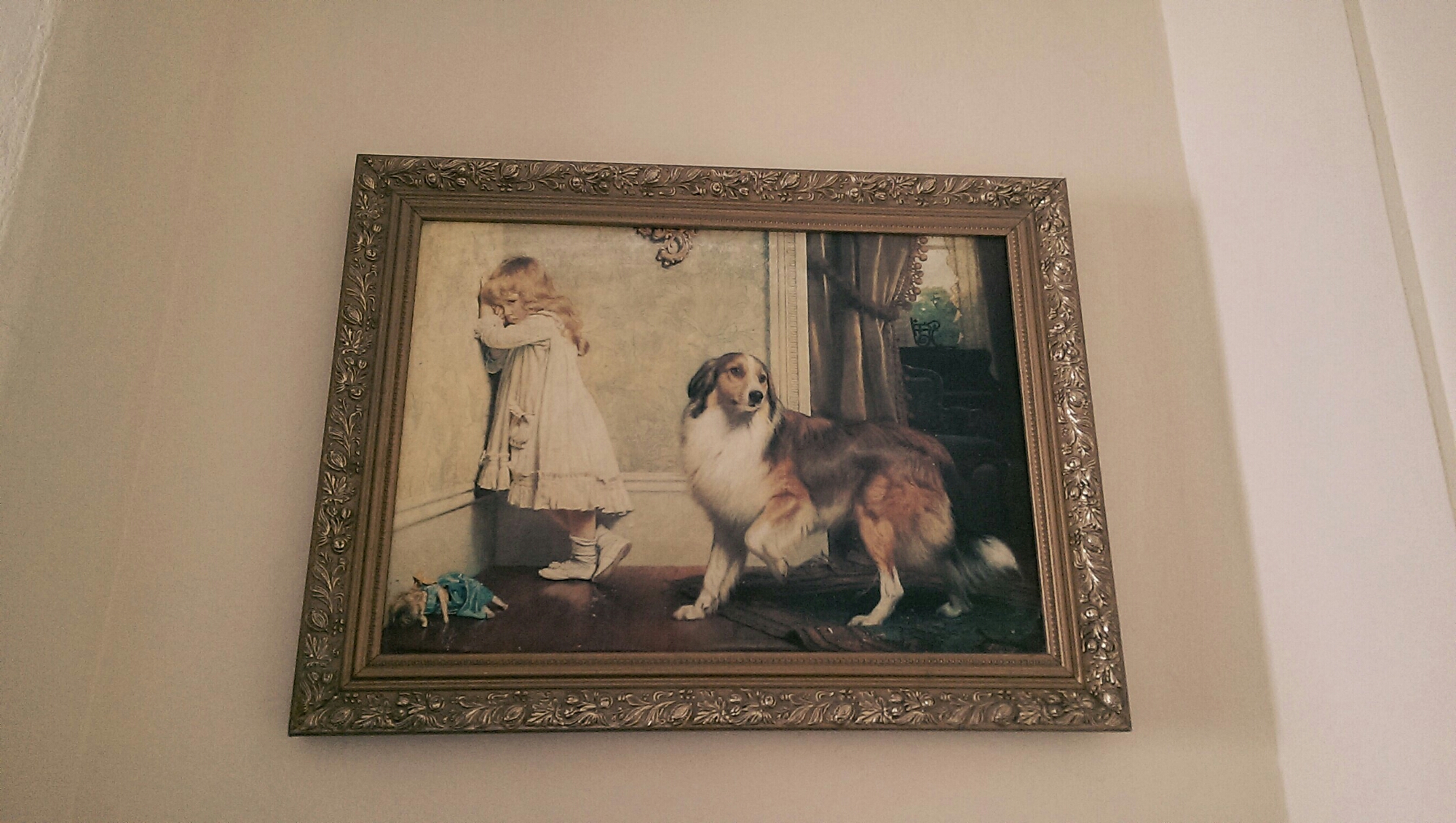 Se la moffetta ti ha attivata oltremodo, a calmarti ci ha pensato un quadro delizioso posto vicino alla porta del soggiorno. Rappresentava una scena di gioco tra una bimba e il suo cane. Una scena molto dolce e assolutamente poetica.