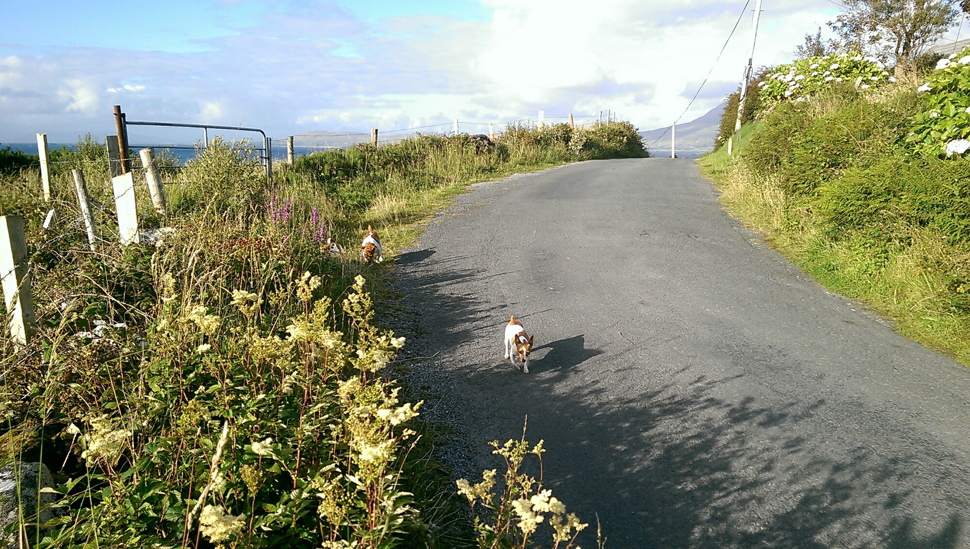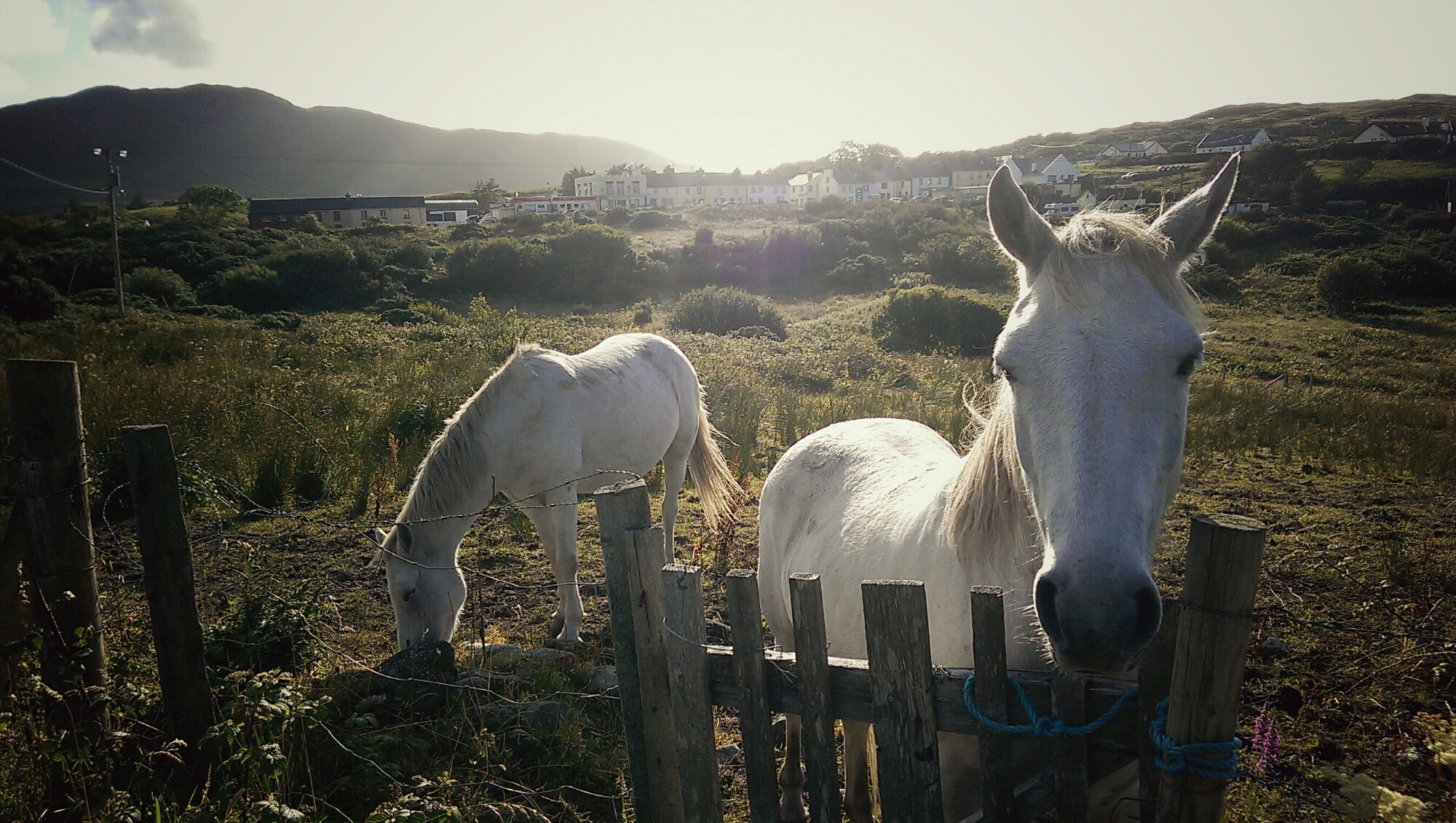 Arriviamo così alle buone notizie: hai conosciuto Charlie e i suoi due figli, ovvero i tre cani più simpatici e coccoloni del Connemara. Durante la passeggiata pomeridiana, quella che ha seguito le ore di lettura, volevi assolutamente consocere i pony che ogni giorno vedi dalla tua stanza e che pascolano in un terreno situato lungo la strada in cui hai fatto la conoscenza di Lancillotto Cane.