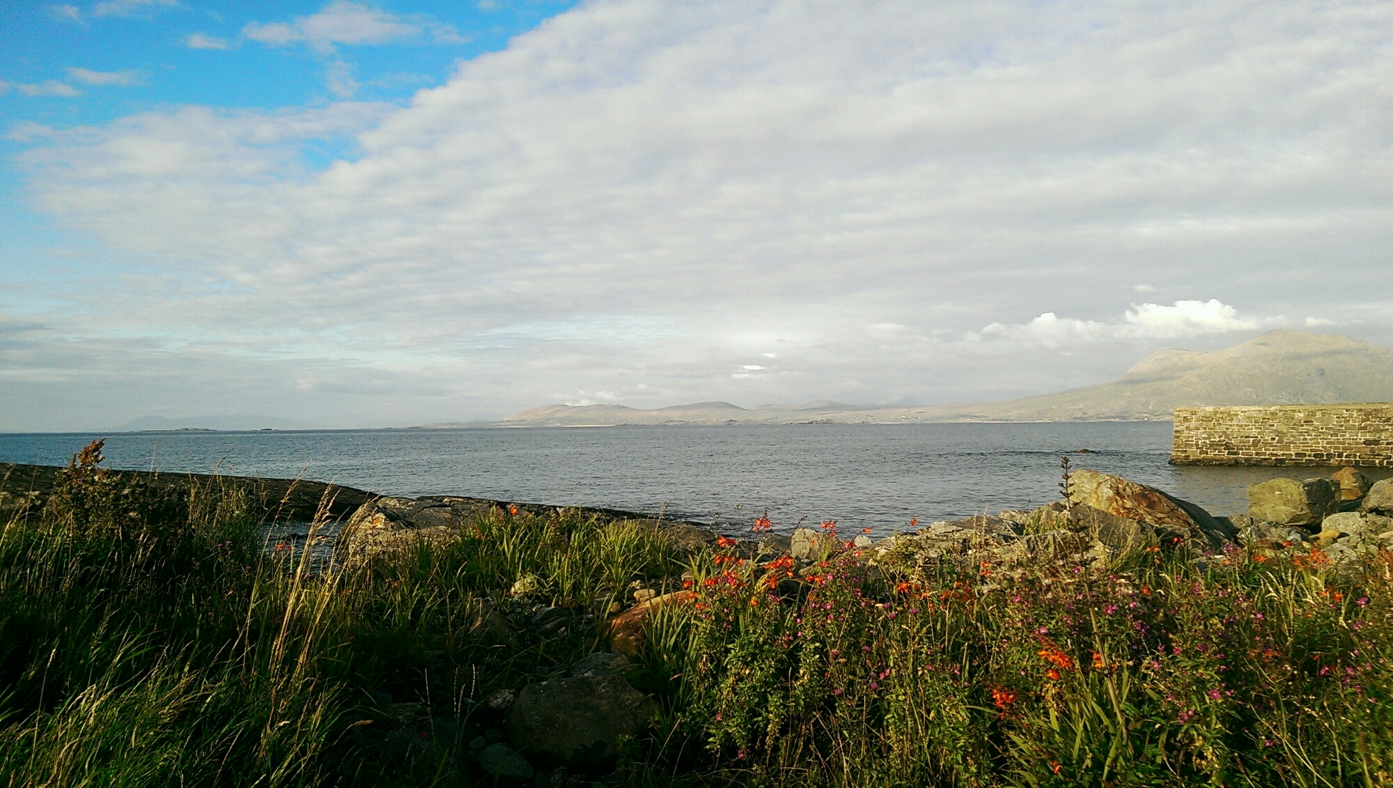Sono seduta sugli scogli di questa spiaggia. Oggi ci sono venuta già due volte. Verso ora di pranzo la marea era bassa e le nuvole alte. Un collina con alcuni vitelli al pascolo prende la salita proprio sul mare e ha rappresentato un luogo perfetto per la lettura. Un gruppo di ragazze dal maneggio situato vicino al B&B sono arrivate dopo un’oretta in passeggiata con i pony lungo la riva del mare. La pioggia poi le ha fatte tornare indietro.