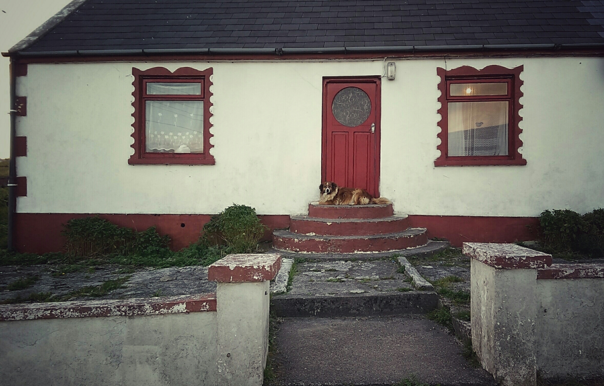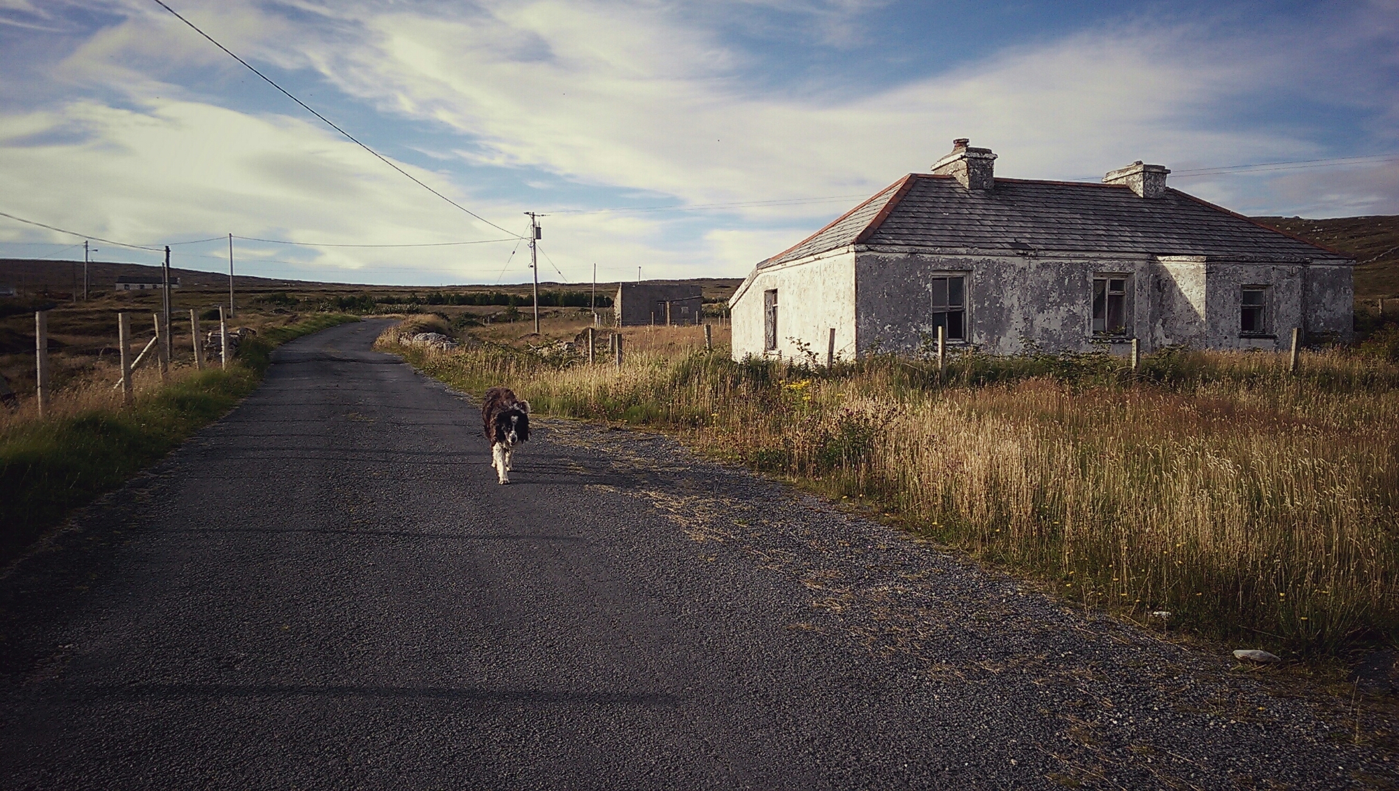 Sei fuori nel silenzio. Fotografi una casa e ne apprezzi la calma desolata e dal nulla, come sempre accade nelle tue storie, spunta fuori un cane. Non hai il tempo per provare sentimenti di paura, che lui butta la sua anziana testa sotto la tua mano. Fai quello che ti chiede. Sarà stato mandato a conforto della sposa mollata sull’altare davanti a tutti gli invitati, pensi dentro di te. E così ringrazi per la cortese attenzione.