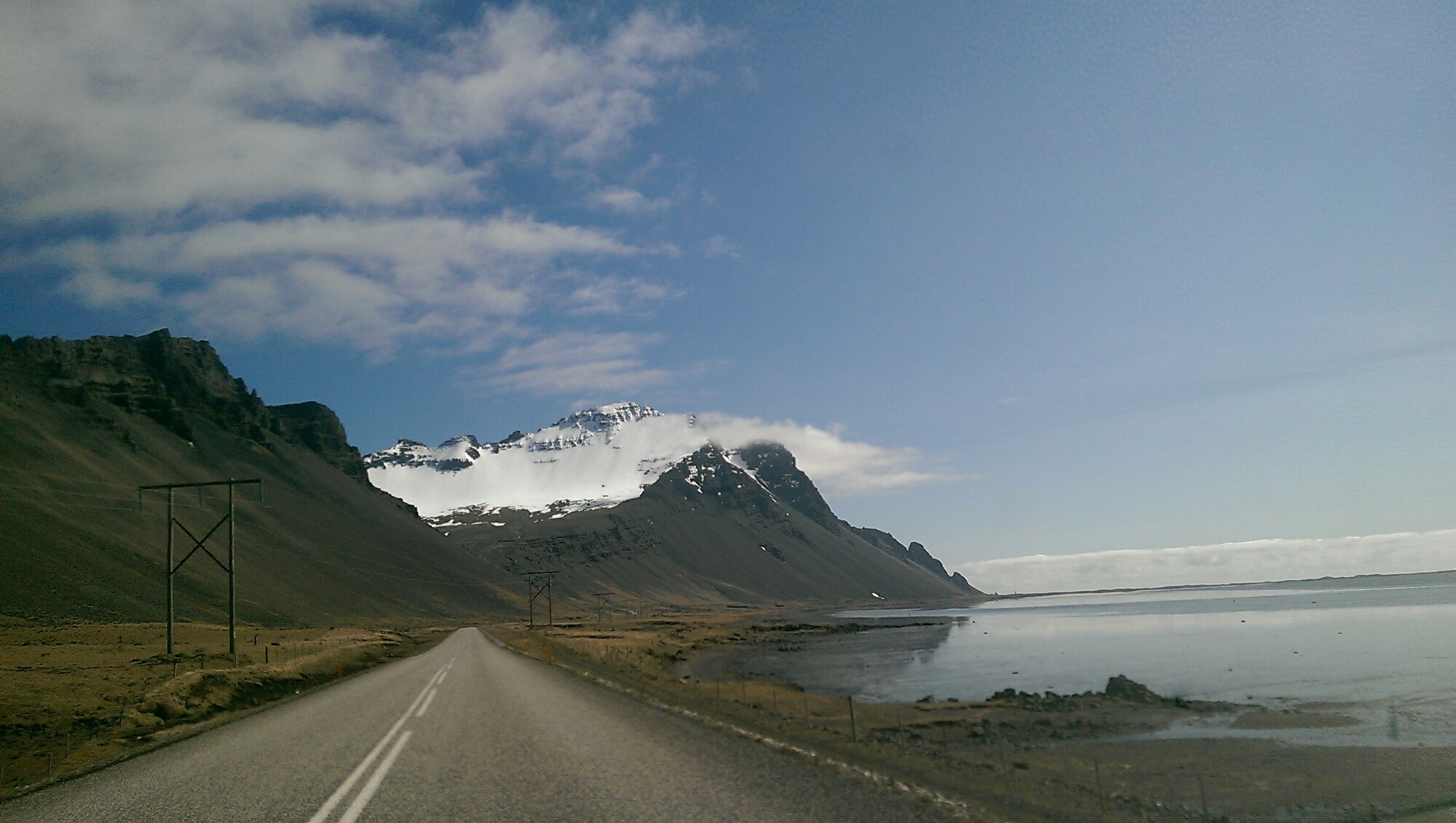 Salgo in macchina un po’ svogliata e percorro i primi 150 Km, ossia la strada che da Höfn giunge a Djupivogur. Il paesaggio vulcanico mi incanta. Incastrata per tutto il tempo tra le montagne di riolite e l’Atlantico, rimango appesa. Sfioro il Búlandstindur, la montagna costiera più alta d’Islanda (1.069 m).