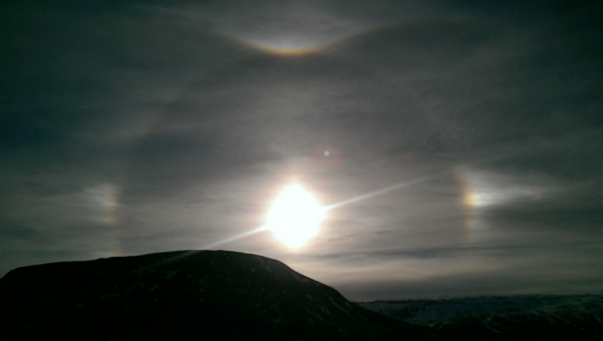 Non ho mai visto una cosa del genere ad occhio nudo. O è Dio o è Mordor, dico ad alta voce. Una volta munita di wifi scopro che quell’effetto ottico si chiama Alone di 22° ma che è molto speciale. Infatti ha pure due cani solari, un arco tangente superiore e un cerchio parelico. Mioddio!!!